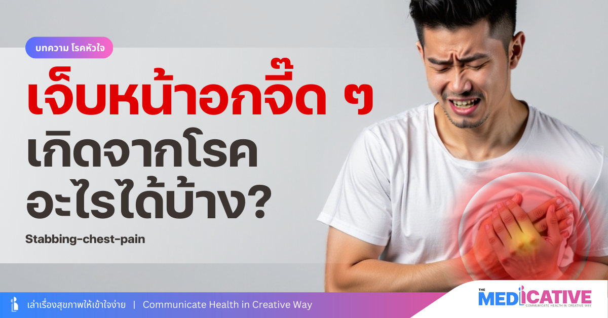 แล้วอาการเจ็บหน้าอกจี๊ด ๆ ที่เกิดขึ้นกับคุณนั้นอันตรายจริงหรือไม่? บทความนี้จาก The Medicative จะช่วยไขข้อสงสัยของคุณให้ชัดเจนยิ่งขึ้น โดยจะพาคุณไปสำรวจตั้งแต่สาเหตุของอาการเจ็บหน้าอกจี๊ด ๆ ว่าแท้จริงแล้วมีสาเหตุจากอะไรได้บ้าง อาการแบบไหนที่เข้าข่ายน่าเป็นห่วง และควรรีบไปพบแพทย์ทันที พร้อมทั้งวิธีสังเกตตัวเองเบื้องต้นว่าอาการแบบไหนบ่งบอกถึงความเสี่ยงของโรคหัวใจ และแบบไหนที่เป็นเพียงอาการทั่วไปที่ไม่ร้ายแรง เพราะเราเชื่อว่า “การรู้เร็ว ย่อมช่วยให้คุณปลอดภัยกว่าเสมอ”