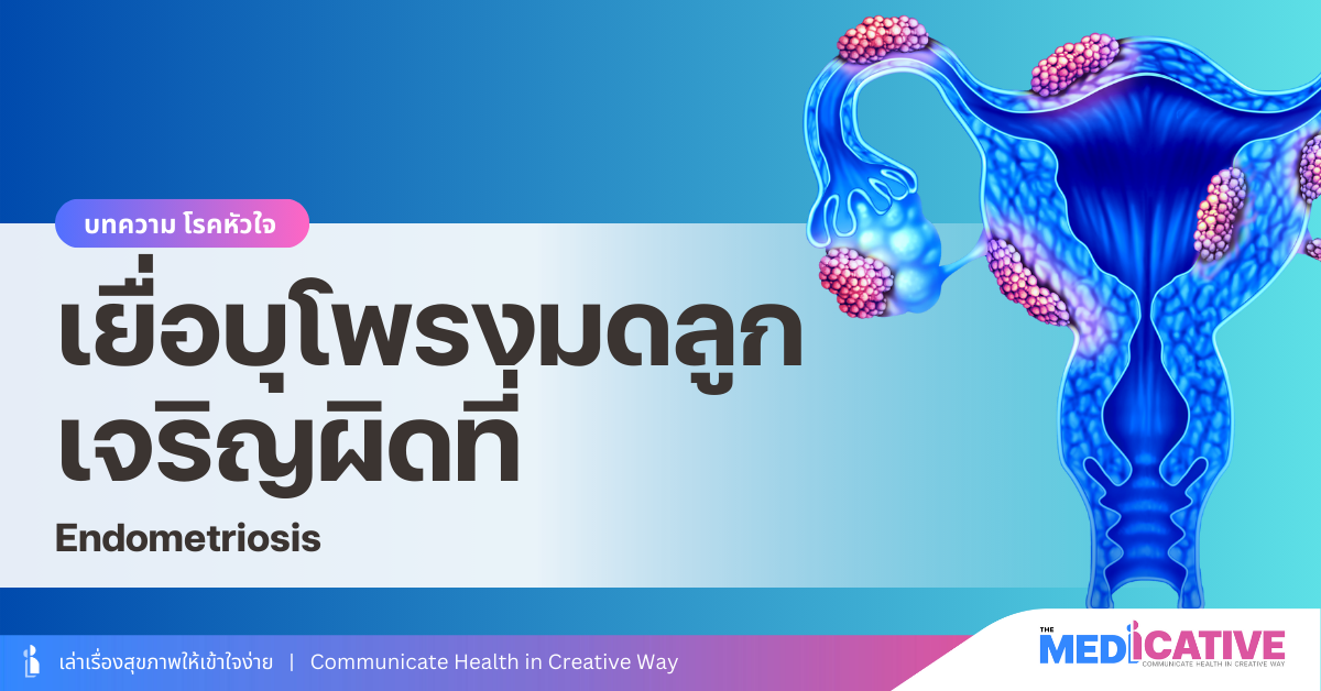 โรคเยื่อบุโพรงมดลูกเจริญผิดที่ (endometriosis) คือภาวะที่เซลล์เยื่อบุโพรงมดลูก (endometrial tissue) ไปเจริญเติบโตผิดที่นอกโพรงมดลูก เช่น ไปเจริญที่รังไข่ (ovary) ท่อนำไข่ (fallopian tube) หรือเยื่อบุช่องท้อง (peritoneum) ซึ่งอาจทำให้เกิดอาการปวดเรื้อรัง โดยเฉพาะในช่วงที่มีประจำเดือน และอาจส่งผลต่อภาวะเจริญพันธุ์ได้นะครับ แม้จะเป็นโรคที่พบได้บ่อย แต่กลับถูกวินิจฉัยล่าช้าถึง 6-10 ปี
